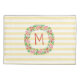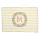 Dies ist ein hübsches, blumengeschmücktes Kissen mit Platz für Ihren individuellen Monogramm-Brief. Es hat einen Kranz von Blume mit Aquarell, bemalt aussehen und Streifen in weiß und hellgelb. Das Design wiederholt sich auf der Rückseite. Tipp: Wenn Sie gewollt haben, die Farbe anzupassen, kann der hellgelbe Teil des gestreiften Hintergrunds "angepasst" werden, um jeden Schatten, den Sie möchten, zu erhalten! Sie können auch die Farbe des Schriftartes oder des Schriftartes auf jeder Seite ändern.