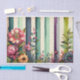 Blumenhintergrund mit Streifen und Platten gefüllt. Touchs von hellgelb, rosa, grün und Lila. Weiße Aquarellmalerei.