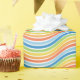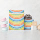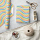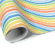 Gelb, orange, blau, grün und weiß, ein Umhüllungspapier, das mit einem farbenfrohen Linienmuster entworfen wurde. Anpassen der Mustergröße unter anderen Optionen.