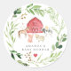 Add the perfect finishing touch to your baby shower with this Farm Animals Baby Shower Classic Round Sticker! Featuring adorable watercolor farm animals — including a cow, pig, sheep, chicken, and duck — surrounded by charming barnyard elements, this sticker is a delightful way to tie your theme together.
