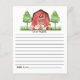 Farm/ Barnyard Birthday Time Kapselkarte mit Rotem Gingham Rücken mit Schweinen, Schafen, Kuh und einem Pferd mit Party Hüten.