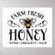 Dieses Poster enthält die Redewendungen "Farm Fresh Honey" und "Pure * Bio * Raw" und eine große schwarz-goldene Honigbiene.
