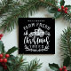 Das Design zeichnet sich durch unser typografisches Design "Farm Fresh Christmas Trees" mit einem weißen rustikalen, handgezeichnet geätzten Vintagen Lieferwagen-LKW mit einem Weihnachtsbaum in der Rückseite aus. Weihnachtsgrün und Blattwerk schaffen ein modernes, rustikales festliches Design. Angepasst mit Ihrem Nachnamen und Monogramm. Handgezeichnet Original-Kunstwerk von Moodthology.