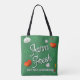 Original art and drawings by artist, KG Nowak. Eat your veggies pattern in the background. Veggies include celery, tomatoes, garlic, cucumber, broccoli, carrots and more. One lovely lemon slices and whole lemon added for flavor and color! Add a personal touch with your name or your own slogan. Carry your purchases with ease.