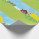 Add a festive and charming touch to your gifts with this colorful farm landscape wrapping paper. The repeating design features a sunny day at the orchard with a classic red barn, grey silo, and ripe apple trees. This high quality gift wrap is perfect for childrens birthdays, baby showers, or holiday presents for anyone who loves the countryside. The bright primary colors and cheerful cartoon style make every package look special, ensuring your gift stands out under the tree or on the party table.