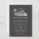 Schwarz-Weiß-Tafel inspiriert Stall Hochzeitseinladung. Schwarzer Hintergrund, weißes Windmühle und Bauernskizze mit modernem typografischem Text. Arrow Akzente und ein gepflegtes, elegantes Aussehen tragen zum rustikalen Vintagen Charme bei.