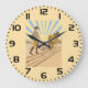 Farmer and Horse Plowing Field Retro Sunrise Große Wanduhr