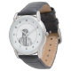 Uhr, Klassische Damenuhr mit schwarzen Lederarmband