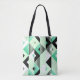Mode Chic Tote Tasche. Dieses moderne Accessoire besticht durch ein auffallendes geometrisches Muster in klassisch schwarz-weiß, ergänzt durch elegante türkisfarbene Farbtöne. Diese Tasche ist perfekt für jeden Anlass und kombiniert mühelos moderne Mode mit zeitloser Eleganz. Tragen Sie Ihr Wesentliches in Stil und machen Sie eine kühne Aussage, wo immer Sie hingehen!