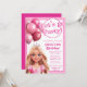 Fashion Doll Geburtstagsfeier Einladung mit niedlicher Prinzessin-Puppe und rosa Ballons Diese Doll-Geburtstagsfeier funktioniert für jedes Alter, fügen Sie einfach Ihre Veranstaltungsdetails hinzu.