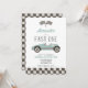 Fast One Race Car 1. Geburtstag Einladung mit blauem Retro Rennwagen.