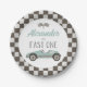 Fast One Race Car 1. Geburtstag Platte mit blauem Vintagen Rennwagen.