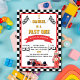 Get ready for a high-speed celebration with this thrilling 'Fast One' racing birthday invitation! Featuring an iconic checkered flag border, dynamic racing flags, a gleaming trophy, and a sleek Formula 1 car design, this invitation sets the perfect pace for an action-packed party. It's ideal for inviting friends and family to join in the excitement of your little champion's special day. Easily add all your essential event details, including date, time, location, RSVP information, and gift registry preferences, to create a comprehensive and exciting invite. Perfect for boys' birthdays, racing enthusiasts, and celebrations that are all about speed and fun!