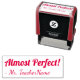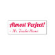 Diese inspirierend Gummi-Briefmarke-Design beinhaltet die ermutigende Botschaft "Fast Perfect!" und den Namen eines angepassten Lehrers. Es könnte von einem Lehrer, Pädagogen oder Tutor genutzt werden, um anzuerkennen, dass ein Schüler eine außergewöhnliche Arbeit geleistet hat.