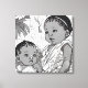 Umgeben von einem prächtigen blumigen Hintergrund, befinden sich zwei wunderschöne, schwarze Babys in einem kleinen, schmucklosen Raum.