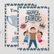 Father's day card with father and two children. Best dad pokal on the back with space for text.