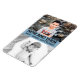 Elegant and modern fridge magnet for dads on father's day featuring two personalizable pictures with a light stripe between them. Put an actual color foto on the upper part, and a black and white old/newborn one on the lower part (black & white effect is automatically applied). The customizable wordings between the pictures read Now and then, happy father's day und your son's name.