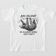 Langsam bin ich? Oder ist alles einfach schnell? - Funny Sloth Illustration Design auf einem Zweig. Line Art Sloth Design in schwarz. Niedliches und lustiges tierisches Sprichwort/Slogan.
