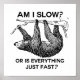 Langsam bin ich? Oder ist alles einfach schnell? - Funny Sloth Grafik Design auf einem Zweig. Sie können den Hintergrund in die Farbe Ihrer Wahl ändern.