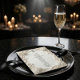Elevate your black-tie reception with this sophisticated design, featuring a stunning faux plaster relief effect and elegant ivory tones for a timeless look.This design features a masterful visual simulation of carved plaster and antique stone. The artwork depicts a sophisticated border of white roses and swirling baroque vines, rendered with soft dimensional shading to create a monochromatic, tone-on-tone ivory and cream palette. A delicate serving cloche icon sits above the formal serif typography and handwritten calligraphy accents.This is a flat printed image with a faux sculpted effect, not actual raised material or embossed paper.
