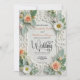 Transport your guests to a world of vintage elegance with this breathtaking design that captures the timeless beauty of a Victorian manor. The delicate balance of romantic florals and architectural detail sets a sophisticated tone for your high-end celebration. It’s the perfect heirloom-quality choice for the bride who cherishes classic European charm.This design features a digital 3D relief filigree border with a faux carved plaster texture in ivory and cream. The layout is accented by realistic peach roses, white daisies, and sage green dusty miller leaves. The typography uses a mix of charcoal black decorative handwritten script and a clean classic serif, all printed on a flat surface with a high-fidelity visual texture.