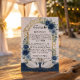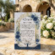 Bestimmen Sie den Ton für einen verzauberten Abend mit diesem eleganten Rezeptionseinleger. Er zeigt romantische Schwäne und tiefe marineblaue Blumen für ein raffiniertes Märchen. Dieses Design verfügt über eine ausgeklügelte Komposition, die mit einer gedruckten weißen Marmorhintergrundstruktur beginnt, die mit einem aufwendigen, faux-goldenen Folien-Filigranbogen überlagert ist. Der obere Rahmen ist mit Wasserfarbenrosen in Schattierungen von Marineblau, Schiefer und Staubblau geschmückt, akzentuiert durch Salbeigrüne Eukalyptusblätter. Am unteren Ende schwimmt ein Paar weißer Schwäne auf einer digitalen Illustration von Wasser, die einen himmlischen Nachthimmel widerspiegelt, der mit gedrucktem goldenen Glitterstaub bestreut ist. Die Typografie kombiniert eine elegante kalligrafische Schriftüberschrift mit traditionellem Serifensch