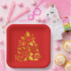 Faux Gold Foil Poinsettias Christmas Trees Pappteller