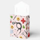 Creative Pflege Gastgeschenk Box mit Pflegeprodukten und Blume Design auf rosa Hintergrund.