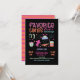 Fun Retro and Modern Favorite Things Gift Exchange Christmas Party with funky fonts and holiday items, candy, gingerbread man, hot coa mug, dessert and other seasonal ohrfeigen. Great for Holiday party around Christmas time! Bright Colors of Pinks, Orange, Blue und Green.