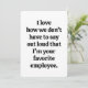 A humorous Boss's Day card highlights being the “favorite employee” through funny and sarcastic messaging. It serves as a lighthearted office gag gift, suitable for various occasions like promotions and work anniversaries, emphasizing appreciation between coworkers and supervisors.