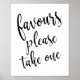 Ein elegantes Hochzeitszeichen, das den Text "Favoriten nehmen Sie bitte eins" in einem extrovertierten Script-Schriftart enthält, die Pinseltextur fügt ein spontanes und spielerisches Gefühl hinzu. Die Hintergrundfarbe kann nach Ihren Wünschen und Vorlieben personalisiert werden, bitte kontaktieren Sie mich, wenn Sie eine spezielle Anfrage haben.