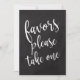 Ein elegantes Hochzeitszeichen, das den Text "Favoriten bitte nehmen Sie eins" in einem extrovertierten Script-Schriftart enthält, die Pinseltextur fügt ein spontanes und spielerisches Gefühl hinzu. Die Hintergrundfarbe kann nach Ihren Wünschen und Vorlieben personalisiert werden, bitte kontaktieren Sie mich, wenn Sie eine spezielle Anfrage haben.