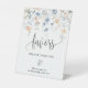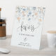 Dieses Design zeigt eine Aquarellillustrierung von blasspfirsichfarbenen und blauen Blume. Text "favors" wird in einem Skript-Schriftart geschrieben.