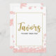 Dieses moderne Blumenschild "Favors" mit einem rosa Blumenhintergrund mit goldfarbenen Glitzer besticht durch seine prächtigen, blühenden Farben. Der Text ist in einer Mischung aus einem spielerischen Kalligraphie-Schriftart und einem modernen Sans-Schriftart geschrieben.