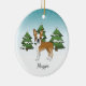 Fawn Boston Terrier in einem Winterwald & Name Keramik Ornament