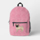 Fawn Mops Dog Cartoon Mops Pink Liebe Herzmuster Bedruckter Rucksack