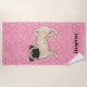 Fawn Mops Hund Niedlichen Mops und rosa Herzen mit Strandtuch