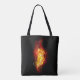 Helle Pfauenfeder aus Feuer und Flamme auf schwarzem Hintergrund.