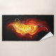 Helle Pfauenfeder aus Feuer und Flamme auf schwarzem Hintergrund.