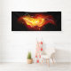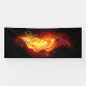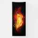 Helle Pfauenfeder aus Feuer und Flamme auf schwarzem Hintergrund.