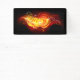 Helle Pfauenfeder aus Feuer und Flamme auf schwarzem Hintergrund.