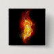 Helle Pfauenfeder aus Feuer und Flamme auf schwarzem Hintergrund.