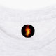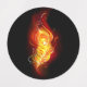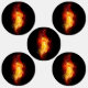 Helle Pfauenfeder aus Feuer und Flamme auf schwarzem Hintergrund.