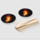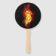 Helle Pfauenfeder aus Feuer und Flamme auf schwarzem Hintergrund.