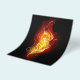 Helle Pfauenfeder aus Feuer und Flamme auf schwarzem Hintergrund.