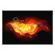 Helle Pfauenfeder aus Feuer und Flamme auf schwarzem Hintergrund.