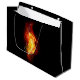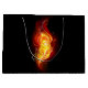 Helle Pfauenfeder aus Feuer und Flamme auf schwarzem Hintergrund.