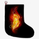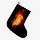 Helle Pfauenfeder aus Feuer und Flamme auf schwarzem Hintergrund.