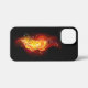 Helle Pfauenfeder aus Feuer und Flamme auf schwarzem Hintergrund.