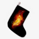 Helle Pfauenfeder aus Feuer und Flamme auf schwarzem Hintergrund.
